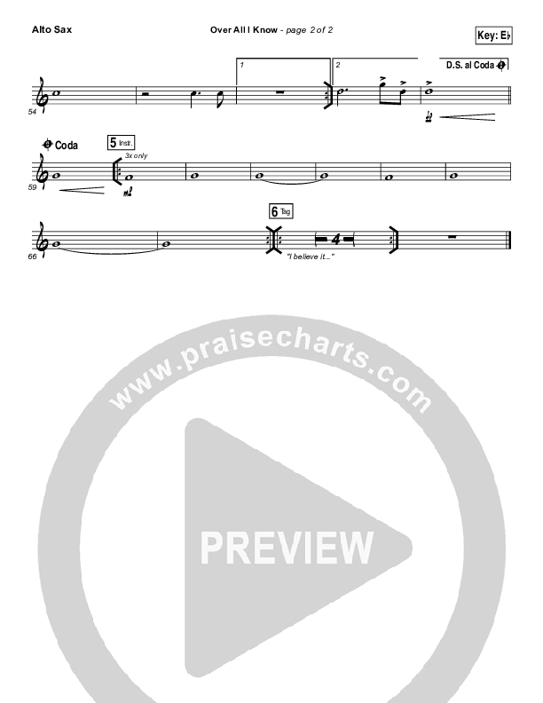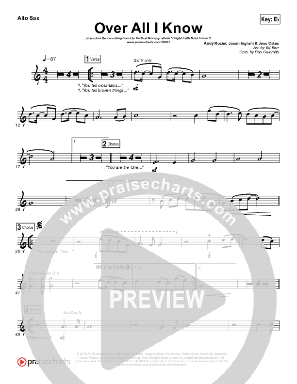 Download the AltoSax sheet music for Over All I Know by Vertical Worship, from the album Bright Faith Bold Future. This song was arranged by Ed Kerr / Daniel Galbraith in the key of E, Eb.