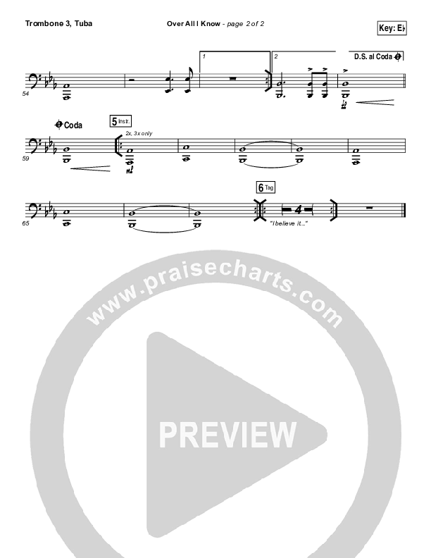 Over All I Know Trombone/Tuba Sheet Music PDF (Vertical Worship)