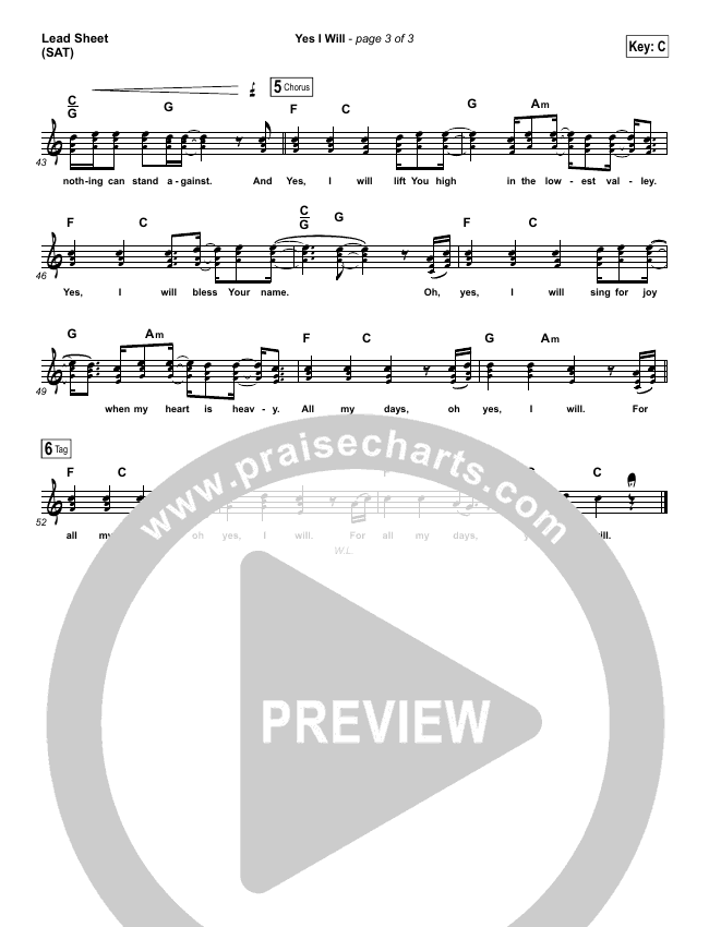 Yes I Will Sheet Music PDF (Vertical Worship)