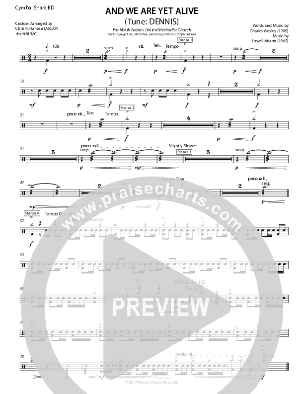 Download the Orchestration for And We Are Yet Alive, from the album Songs Of Chris Hansen. This song was arranged by Chris Hansen in the key of F.