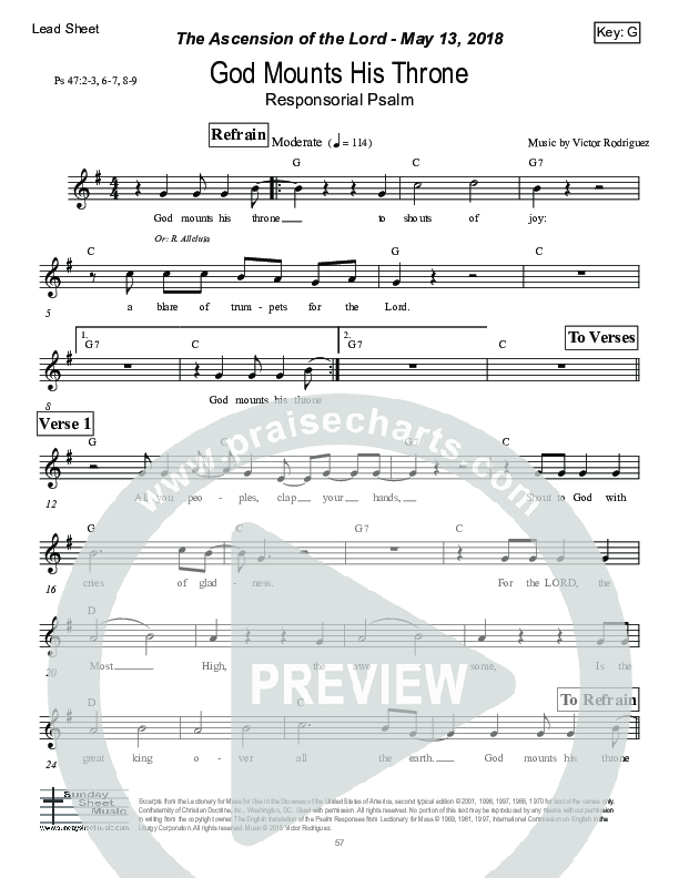 Download the sheet music for God Mounts His Throne (Psalm 47) by Victor Rodriguez, from the album Psalms And Acclamations: Easter 2018. This song was arranged by Victor Rodriguez in the key of G.