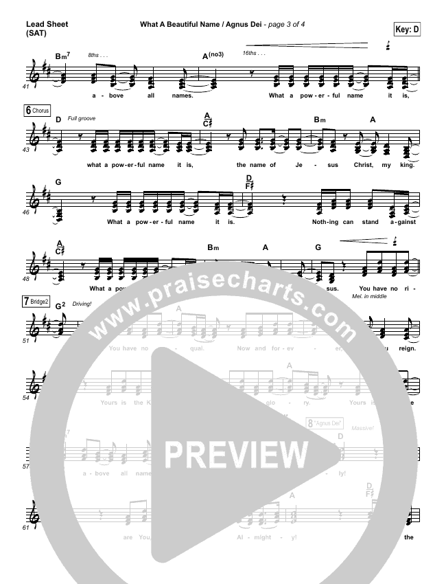 Download the sheet music for What A Beautiful Name / Agnus Dei (Medley) by Travis Cottrell, from the album The Reason. This song was arranged by Daniel Galbraith in the key of Bb, C, D, E, Eb, F, G.