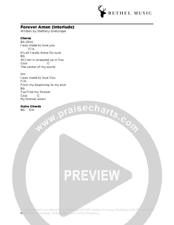 Download the PDF Chord Charts for Forever Amen (Interlude) by Steffany Gretzinger, from the album Blackout. This song was arranged by Bethel Music in the key of .