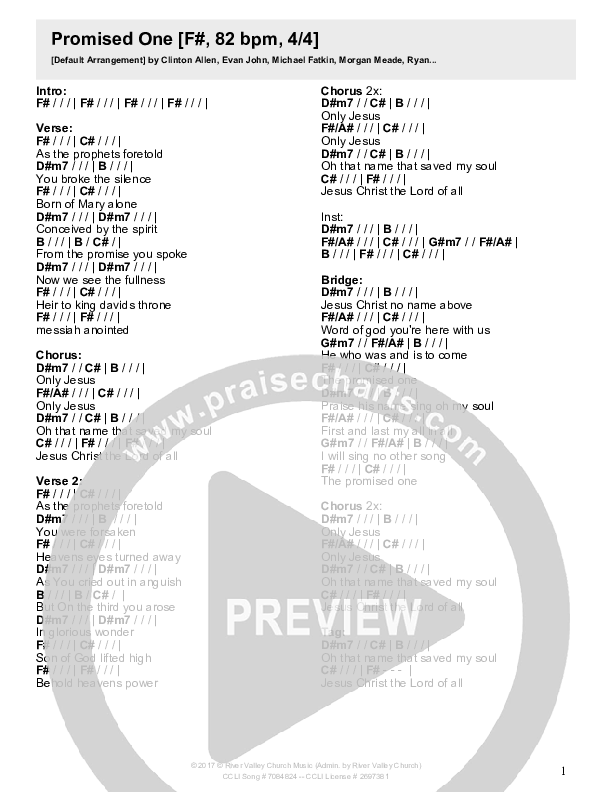 Download the PDF Chord Charts for Promised One by River Valley Worship, from the album Million Lifetimes.