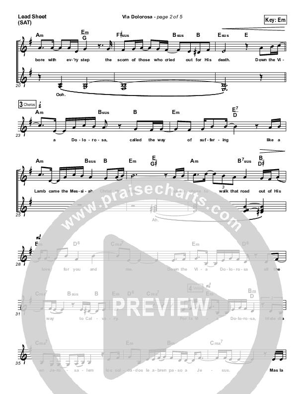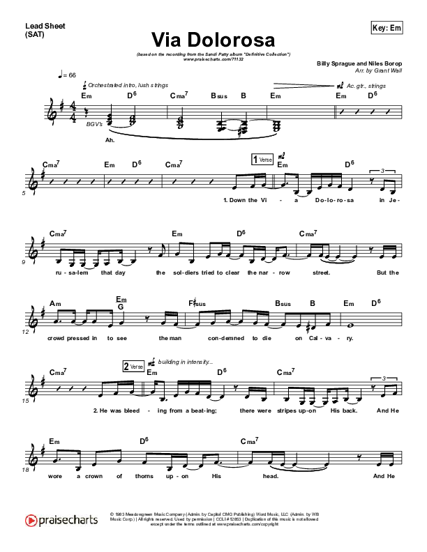 Download the sheet music for Via Dolorosa by Sandi Patty, from the album Definitive Collection. This song was arranged by PraiseCharts in the key of Dm, Em.