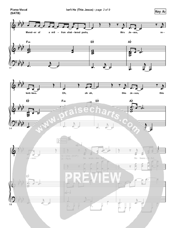 Download the sheet music for Isn't He (This Jesus) by The Belonging Co, from the album Awe + Wonder. This song was arranged by Daniel Galbraith in the key of A, Ab.