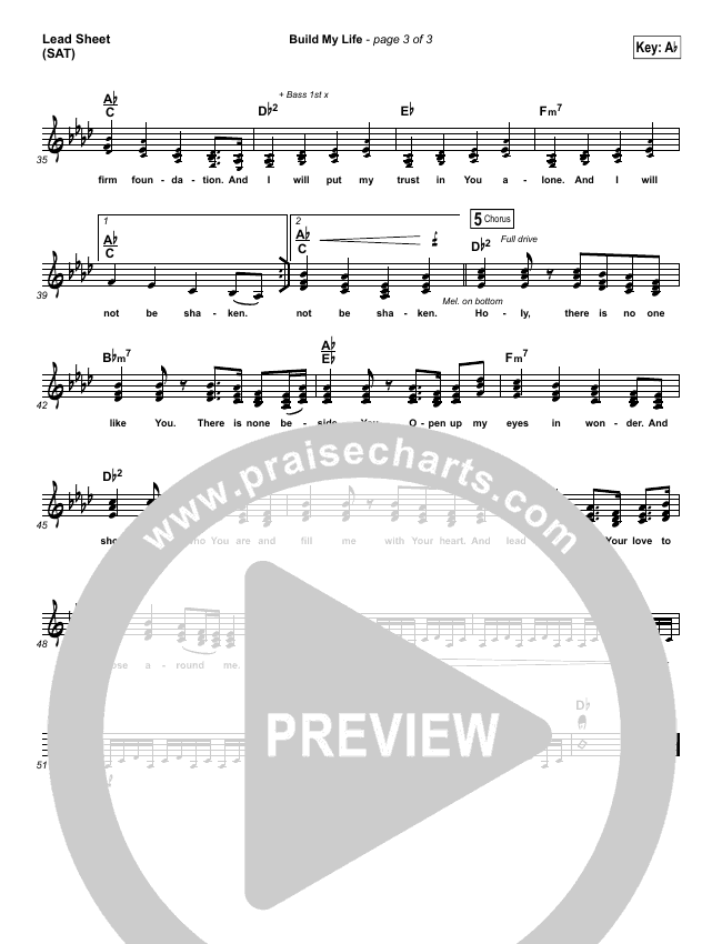 Download the Orchestration for Build My Life by Pat Barrett, from the album Pat Barrett. This song was arranged by Dave Iula / Daniel Galbraith in the key of Ab, D, E, Eb, F, G.