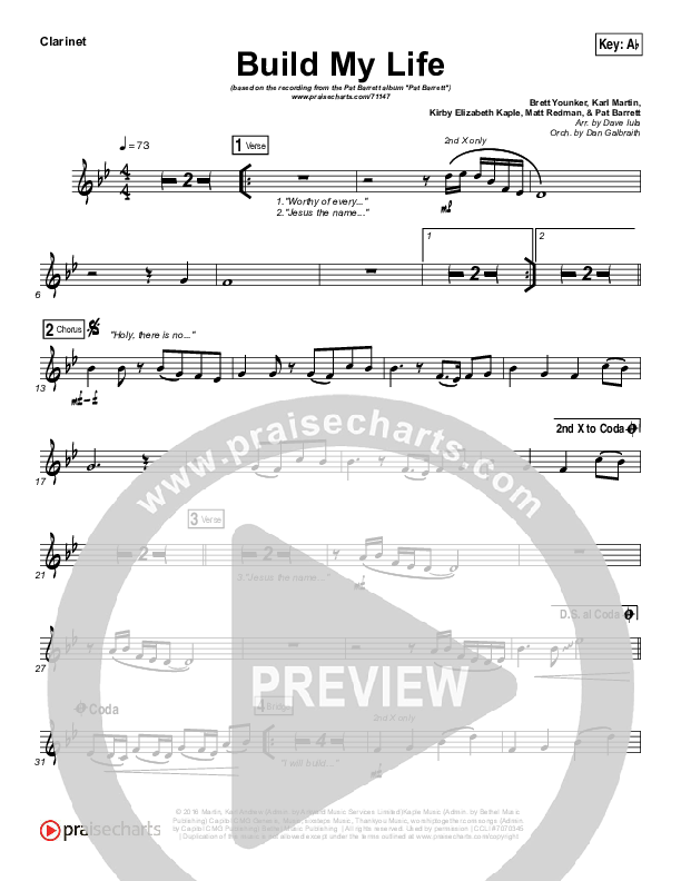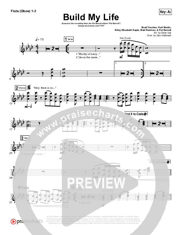 Download the Orchestration wind parts for Build My Life by Pat Barrett, from the album Pat Barrett. This song was arranged by Dave Iula / Daniel Galbraith in the key of Ab, D, E, Eb, F, G.