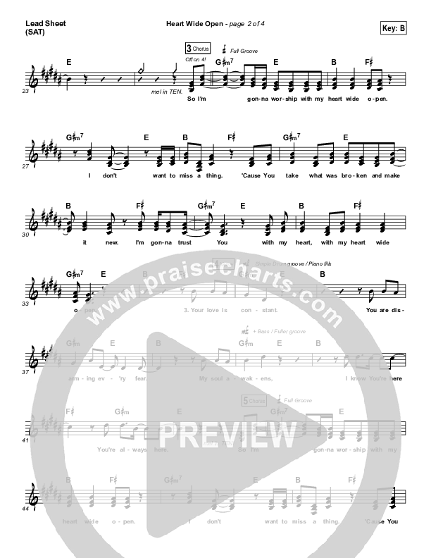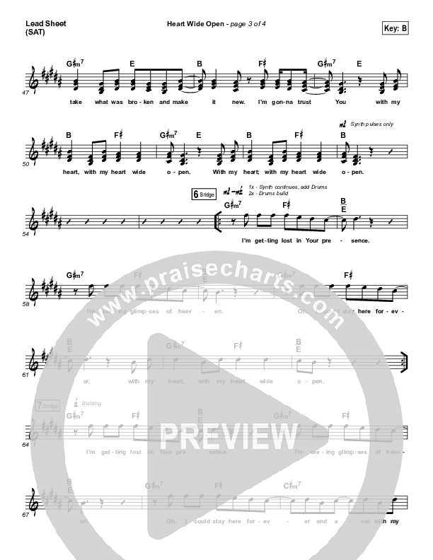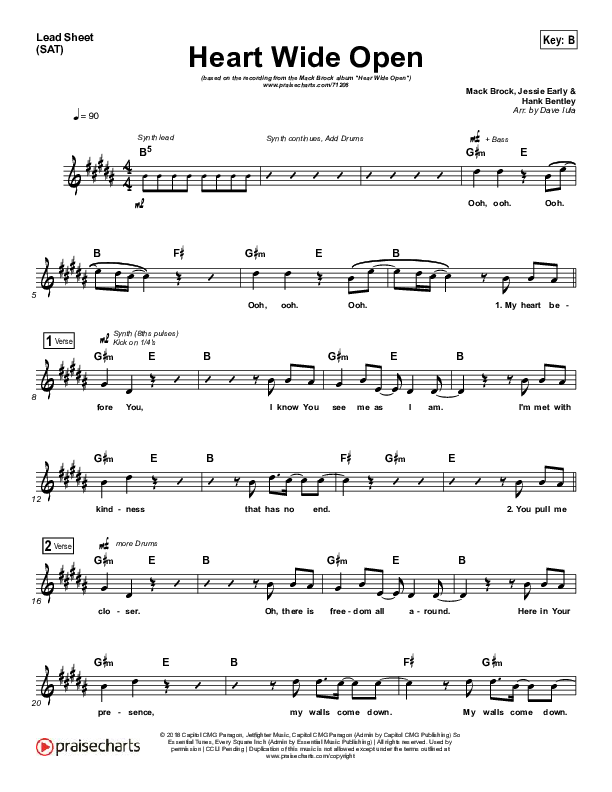 Download the sheet music for Heart Wide Open by Mack Brock, from the album Greater Things. This song was arranged by Dave Iula in the key of A, B.