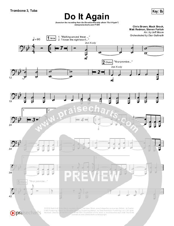 Download the Trombone 3/Tuba sheet music for Do It Again (Radio) by Elevation Worship, from the album Do It Again. This song was arranged by Jeff Moore in the key of A, Bb.