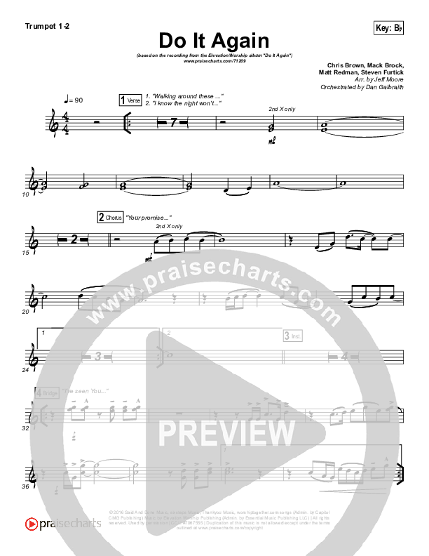 Download the trumpet sheet music for Do It Again (Radio) by Elevation Worship, from the album Do It Again. This song was arranged by Jeff Moore in the key of A, Bb.