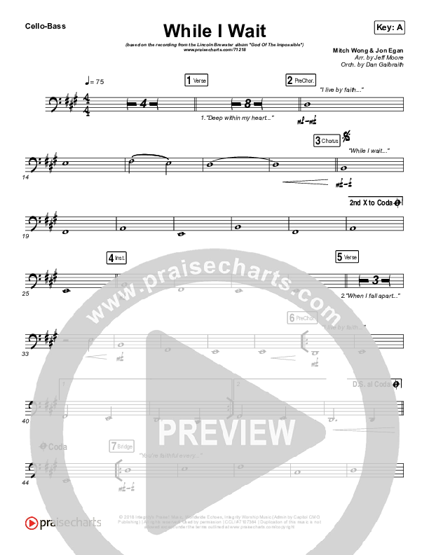 Download the Orchestration for While I Wait by Lincoln Brewster, from the album God Of The Impossible. This song was arranged by Jeff Moore / Daniel Galbraith in the key of A, G.