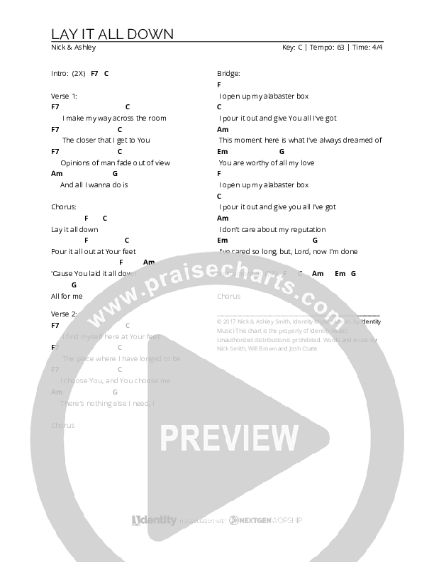 Download the PDF Chord Charts for Lay It All Down by Nick & Ashley, from the album Here.