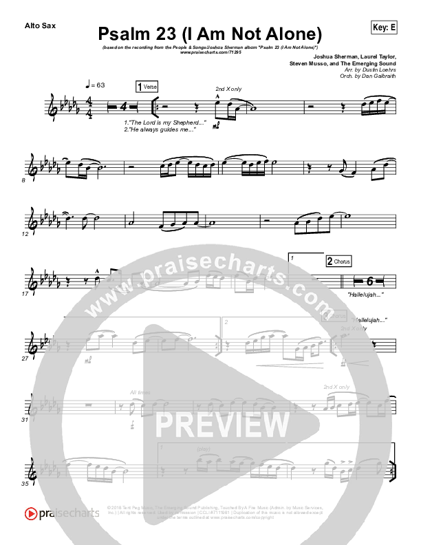 Psalm 23 (I Am Not Alone) Alto Sax Sheet Music PDF (People & Songs / Joshua Sherman)