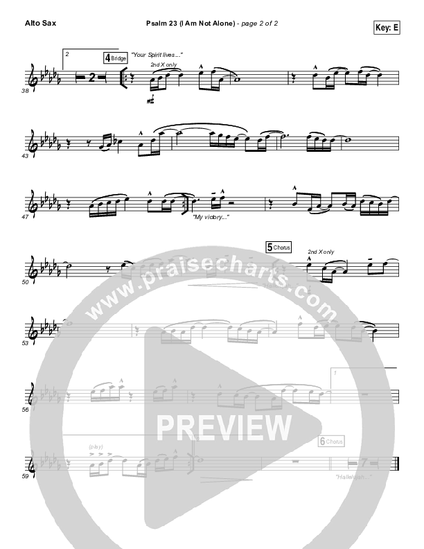 Download the AltoSax sheet music for Psalm 23 (I Am Not Alone) by People & Songs / Joshua Sherman, from the album Psalm 23 (I Am Not Alone). This song was arranged by Dustin Loehrs / Daniel Galbraith in the key of E, Eb.
