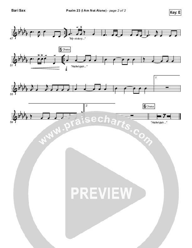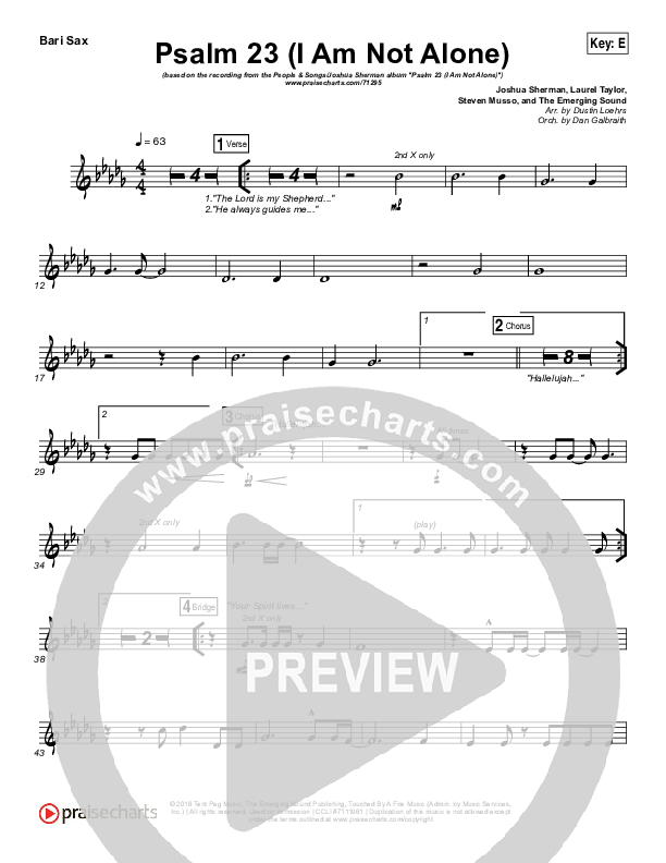 Download the Bari Sax sheet music for Psalm 23 (I Am Not Alone) by People & Songs / Joshua Sherman, from the album Psalm 23 (I Am Not Alone). This song was arranged by Dustin Loehrs / Daniel Galbraith in the key of E, Eb.
