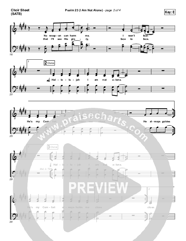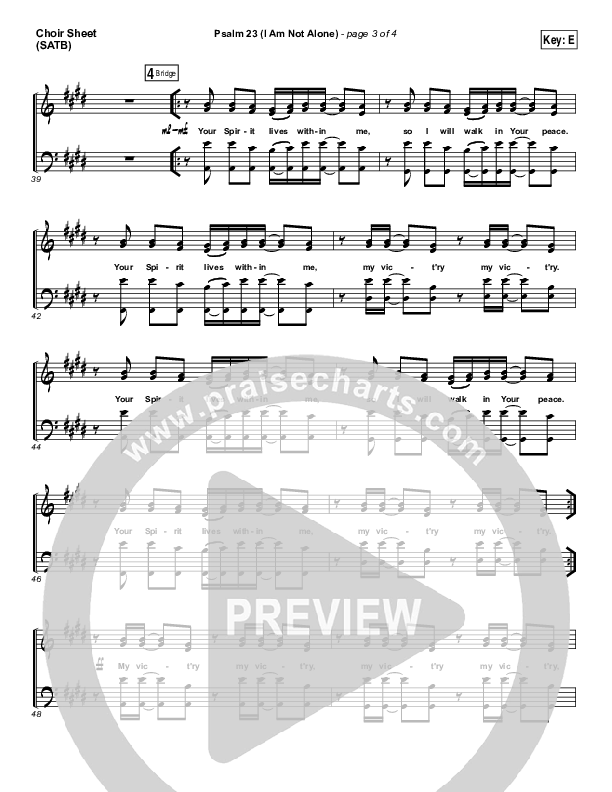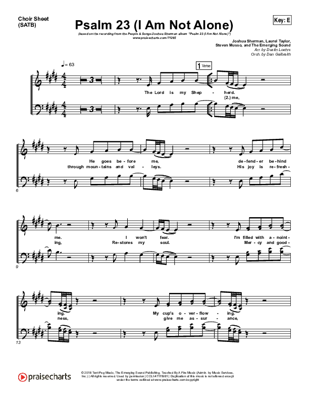 Download the Choir Sheet for Psalm 23 (I Am Not Alone) by People & Songs / Joshua Sherman, from the album Psalm 23 (I Am Not Alone). This song was arranged by Dustin Loehrs / Daniel Galbraith in the key of E, Eb.
