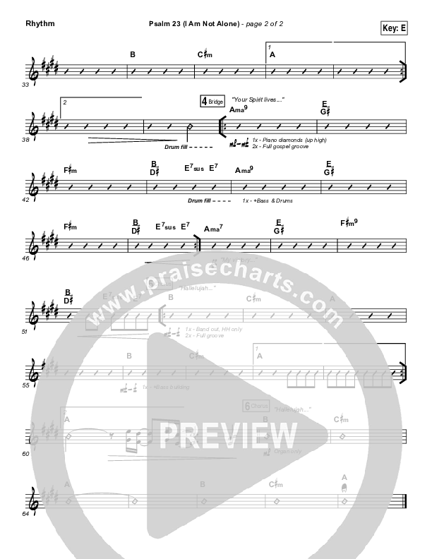 Download the Rhythm Chart for Psalm 23 (I Am Not Alone) by People & Songs / Joshua Sherman, from the album Psalm 23 (I Am Not Alone). This song was arranged by Dustin Loehrs / Daniel Galbraith in the key of E, Eb.