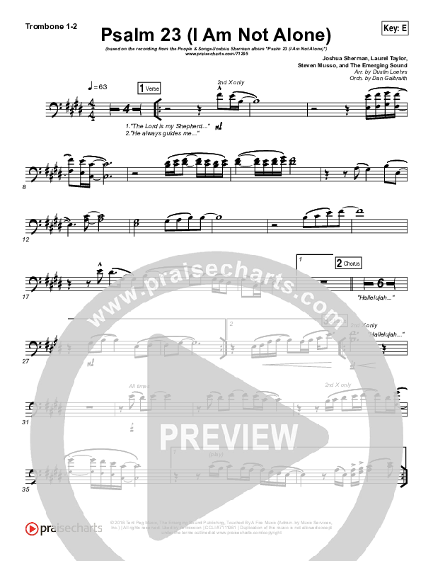 Psalm 23 (I Am Not Alone) Trombone Sheet Music PDF (People & Songs / Joshua Sherman)