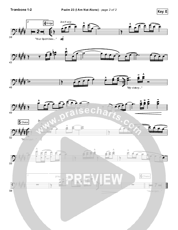 Download the Trombone 1,2 sheet music for Psalm 23 (I Am Not Alone) by People & Songs / Joshua Sherman, from the album Psalm 23 (I Am Not Alone). This song was arranged by Dustin Loehrs / Daniel Galbraith in the key of E, Eb.