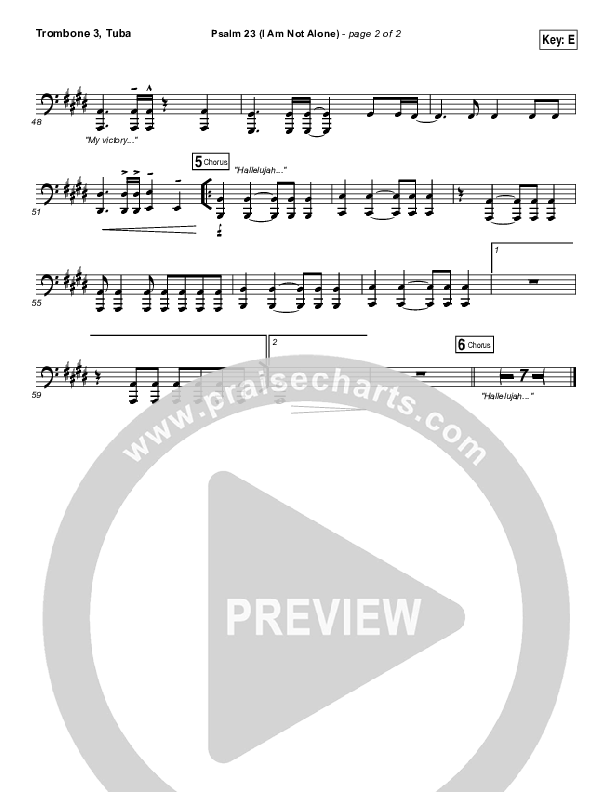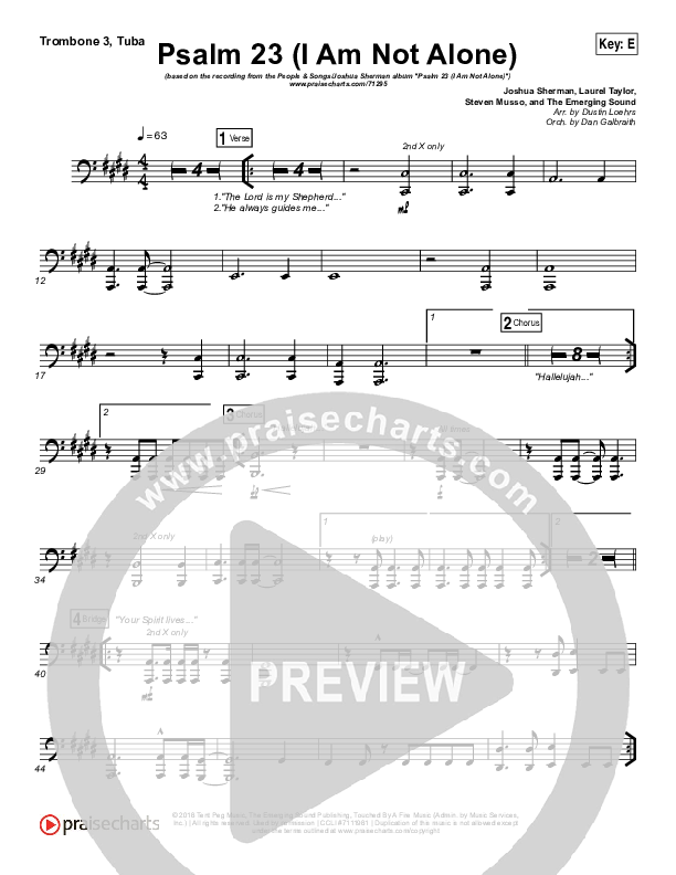 Download the Trombone 3/Tuba sheet music for Psalm 23 (I Am Not Alone) by People & Songs / Joshua Sherman, from the album Psalm 23 (I Am Not Alone). This song was arranged by Dustin Loehrs / Daniel Galbraith in the key of E, Eb.