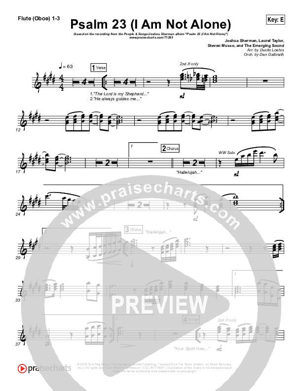 Download the Orchestration wind parts for Psalm 23 (I Am Not Alone) by People & Songs / Joshua Sherman, from the album Psalm 23 (I Am Not Alone). This song was arranged by Dustin Loehrs / Daniel Galbraith in the key of E, Eb.