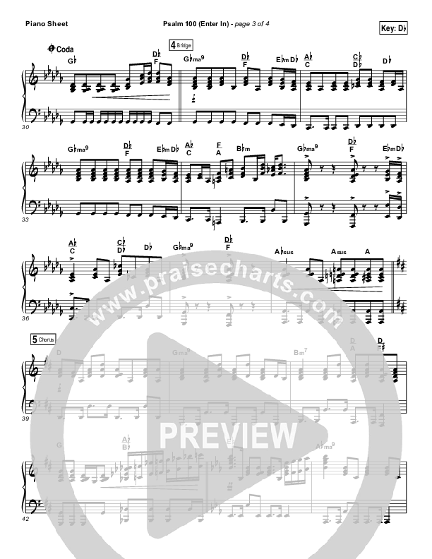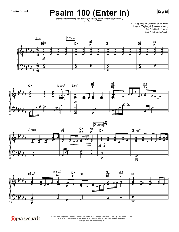 Download the piano sheet for Psalm 100 (Enter In) by People & Songs / Joshua Sherman / Charity Gayle / Steven Musso, from the album Psalm 100 (Enter In). This song was arranged by Dustin Loehrs / Daniel Galbraith in the key of D, Db.
