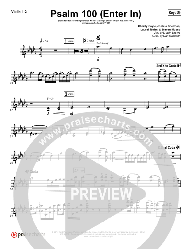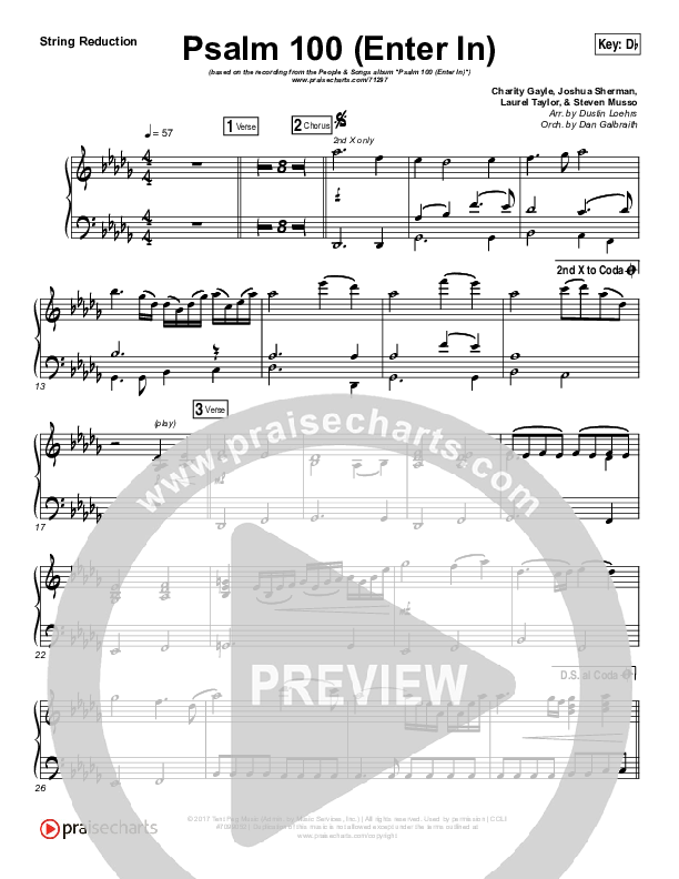 Download the Orchestration string parts for Psalm 100 (Enter In) by People & Songs / Joshua Sherman / Charity Gayle / Steven Musso, from the album Psalm 100 (Enter In). This song was arranged by Dustin Loehrs / Daniel Galbraith in the key of D, Db.