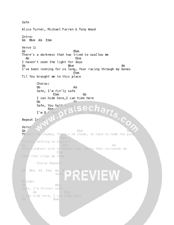 Download the PDF Chord Charts for Safe by Alisa Turner, from the album Miracle Or Not.