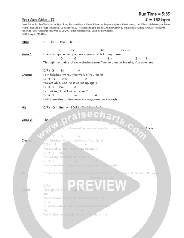 Download the PDF Chord Charts for You Are Able by Eagle Brook Music, from the album My Soul Sings Out.