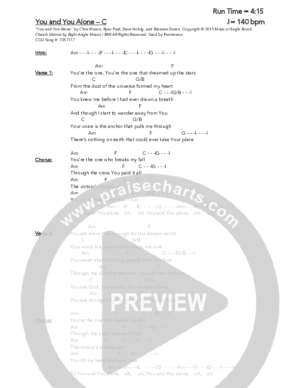 Download the PDF Chord Charts for You And You Alone by Eagle Brook Music, from the album My Soul Sings Out.