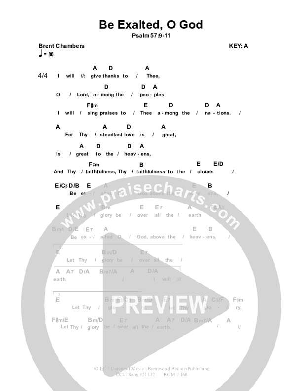 Download the PDF Chord Charts for Be Exalted O God by Dennis Prince / Nolene Prince, from the album Resource Christian Music.