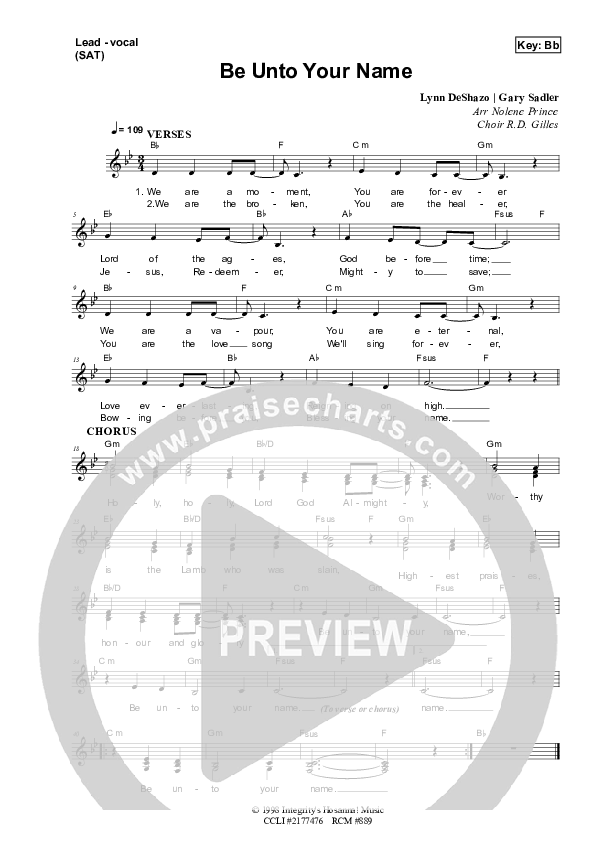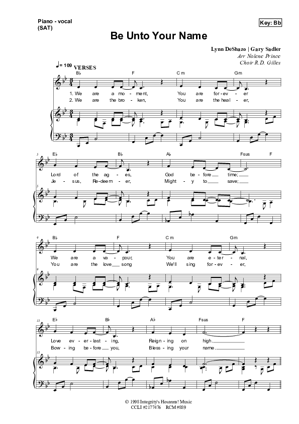 Download the sheet music for Be Unto Your Name by Dennis Prince / Nolene Prince, from the album Resource Christian Music.