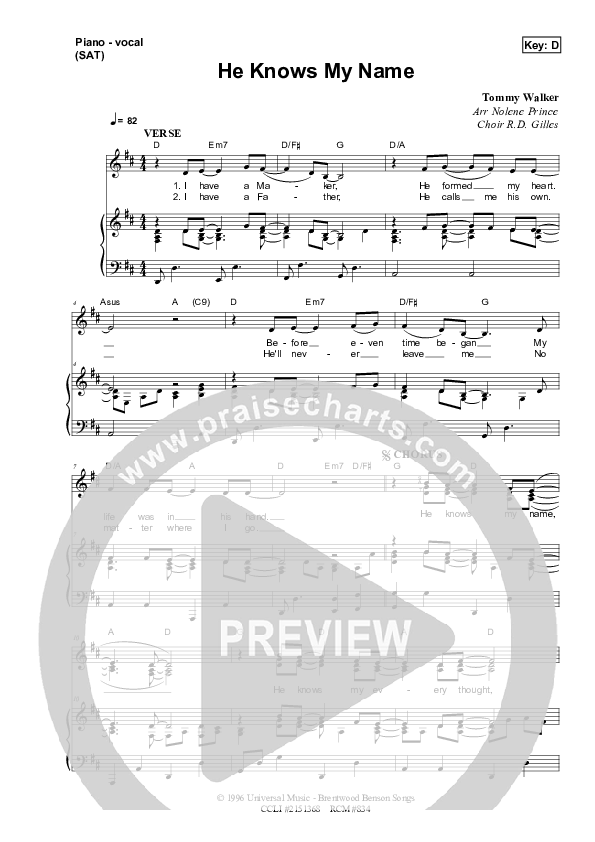 Download the sheet music for He Knows My Name by Dennis Prince / Nolene Prince, from the album Resource Christian Music.
