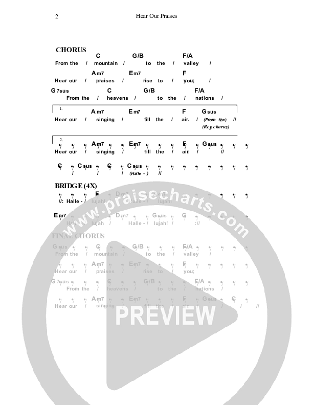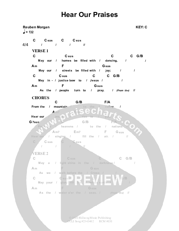Download the PDF Chord Charts for Hear Our Praises by Dennis Prince / Nolene Prince, from the album Resource Christian Music.