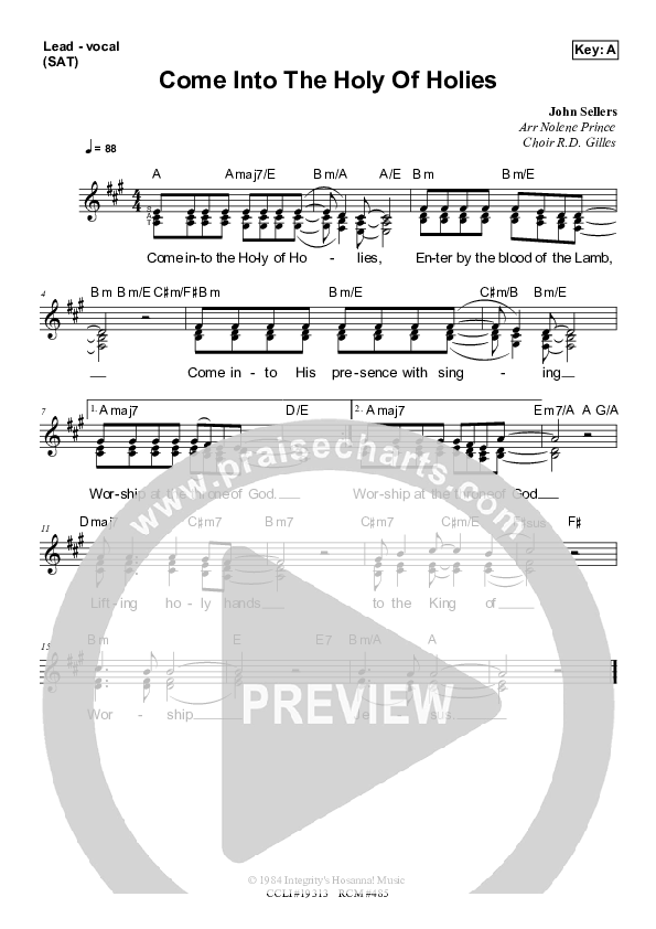 Download the sheet music for Come Into The Holy Of Holies by Dennis Prince / Nolene Prince, from the album Resource Christian Music.