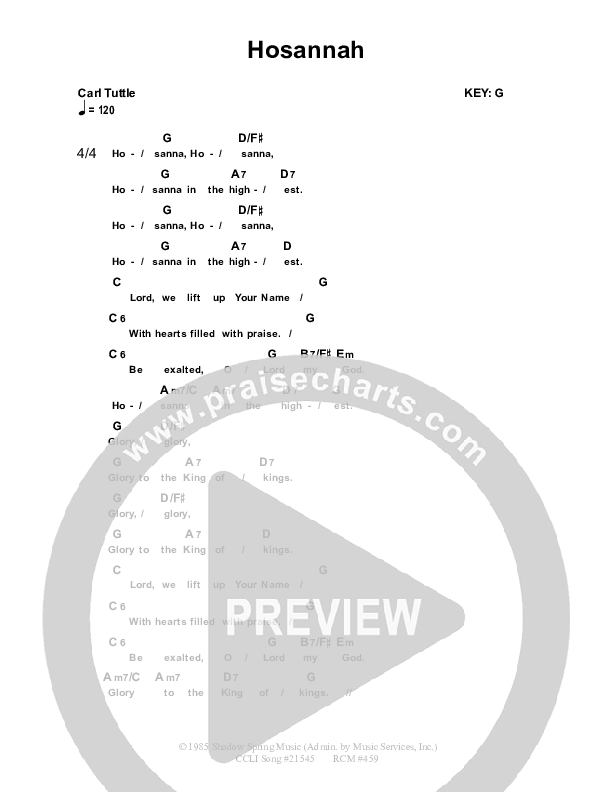 Download the PDF Chord Charts for Hosanna by Dennis Prince / Nolene Prince, from the album Resource Christian Music.