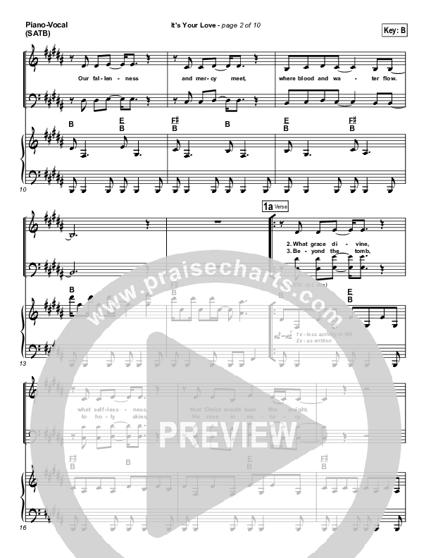 Download the sheet music for It's Your Love by Hillsong Worship, from the album Faith + Hope + Love. This song was arranged by Daniel Galbraith in the key of B, Bb.