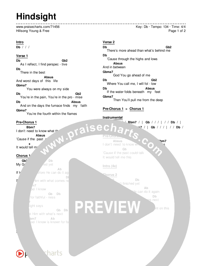 Hindsight Chords PDF (Hillsong Young & Free)