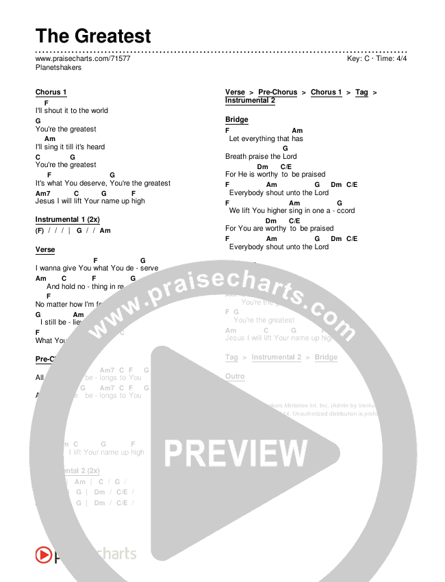 Download the PDF Chord Charts for The Greatest by Planetshakers, from the album Heaven On Earth.