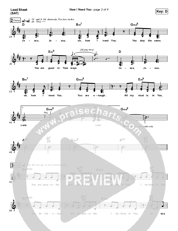 Download the sheet music for How I Need You by Highlands Worship, from the album Vol 2: Jesus You Alone. This song was arranged by Jeff Moore in the key of D, Eb.