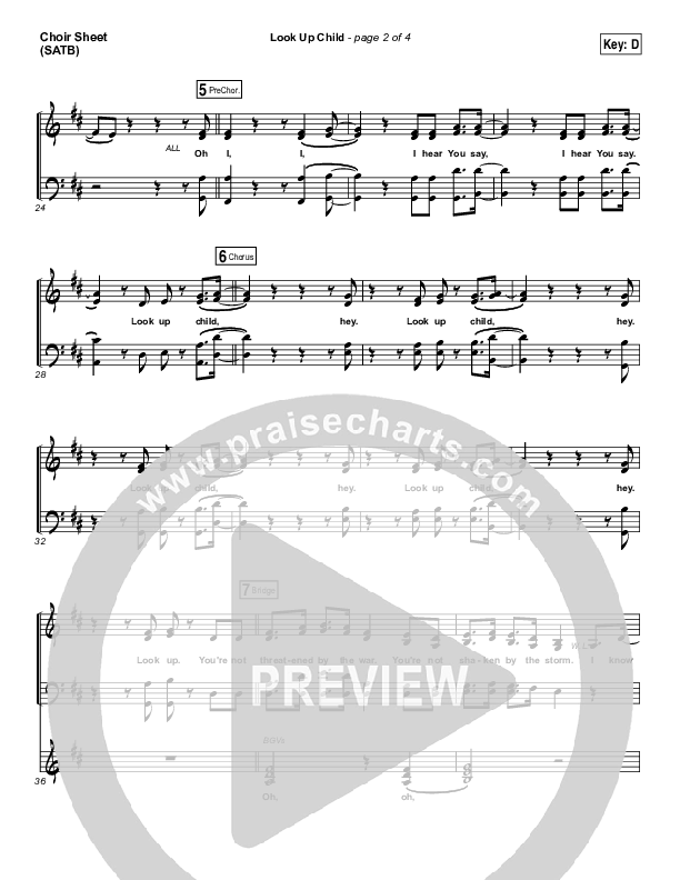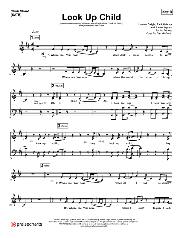 Download the Choir Sheet for Look Up Child by Lauren Daigle, from the album Look Up Child. This song was arranged by Ed Kerr / Daniel Galbraith in the key of D, Eb.