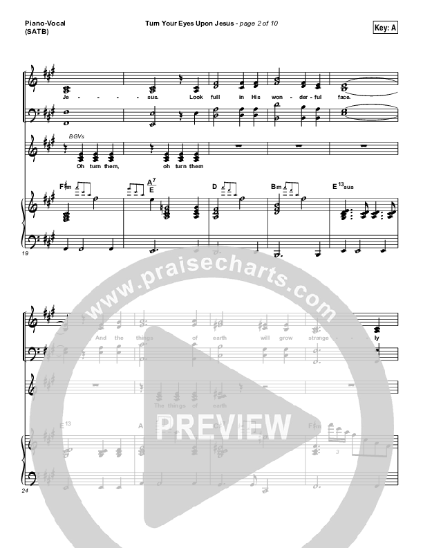 Download the sheet music for Turn Your Eyes Upon Jesus by Lauren Daigle, from the album Look Up Child. This song was arranged by Daniel Galbraith / Jeff Moore in the key of A, Bb.