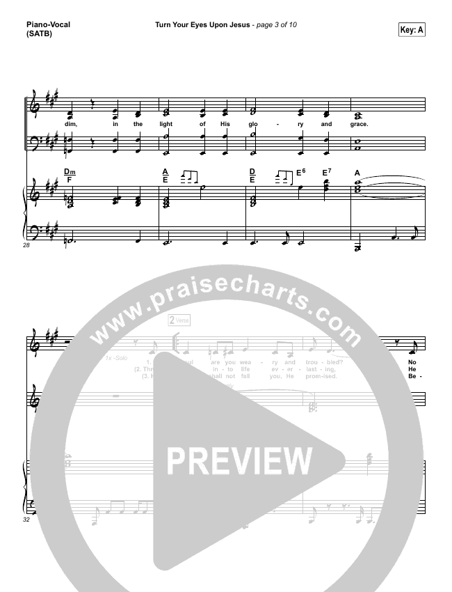 Download the sheet music for Turn Your Eyes Upon Jesus by Lauren Daigle, from the album Look Up Child. This song was arranged by Daniel Galbraith / Jeff Moore in the key of A, Bb.