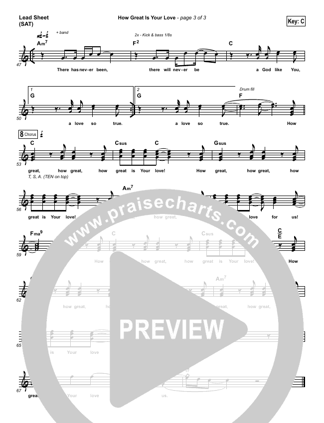 Download the sheet music for How Great Is Your Love by Phil Wickham, from the album Living Hope. This song was arranged by Ed Kerr in the key of A, C.