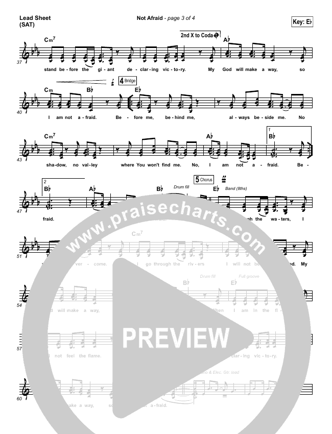 Download the sheet music for Not Afraid by Jesus Culture / Kim Walker-Smith, from the album Living With A Fire. This song was arranged by Ed Kerr / Daniel Galbraith in the key of G, Gb.