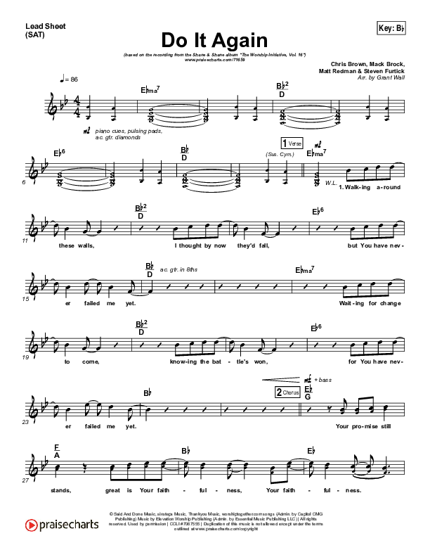 Download the sheet music for Do It Again by The Worship Initiative / Shane & Shane, from the album The Worship Initiative Volume 16. This song was arranged by Grant Wall in the key of A, Bb.