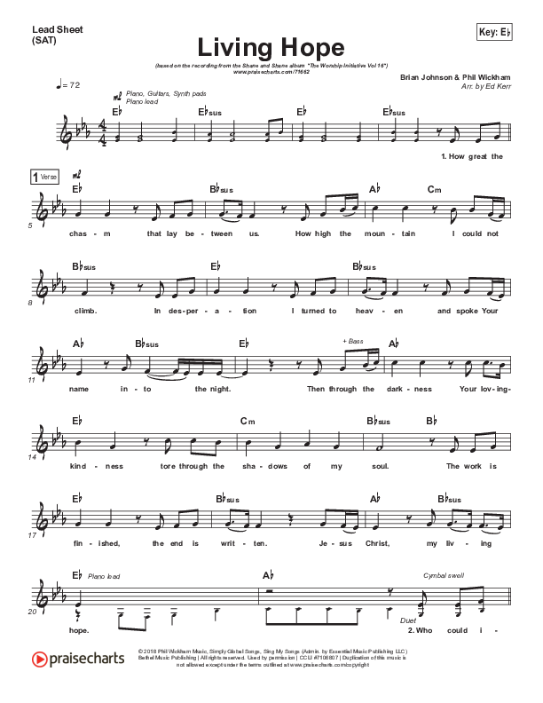 Download the sheet music for Living Hope by The Worship Initiative / Shane & Shane, from the album The Worship Initiative Volume 16. This song was arranged by Ed Kerr in the key of E, Eb.