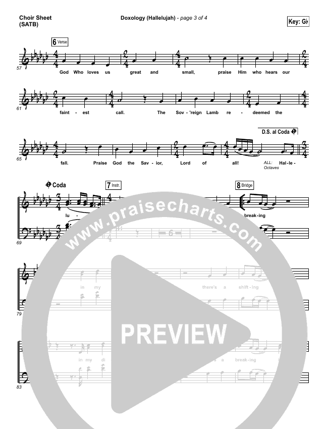 Download the Choir Sheet for Doxology (Hallelujah) by David & Nicole Binion / Tasha Cobbs Leonard, from the album Dwell: A Live Worship Experience. This song was arranged by Daniel Galbraith in the key of G, Gb.