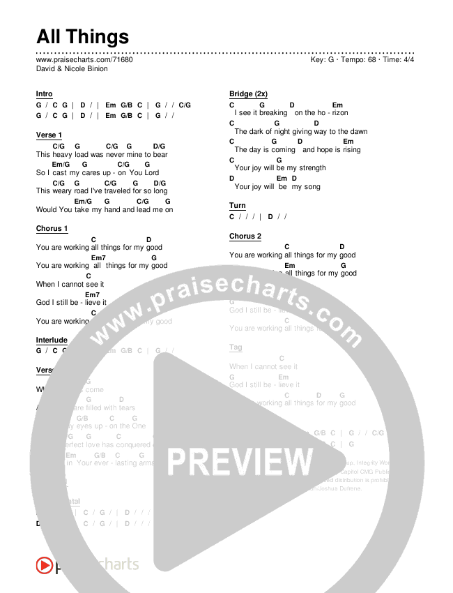 Download the PDF Chord Charts for All Things by David & Nicole Binion, from the album Dwell: A Live Worship Experience.
